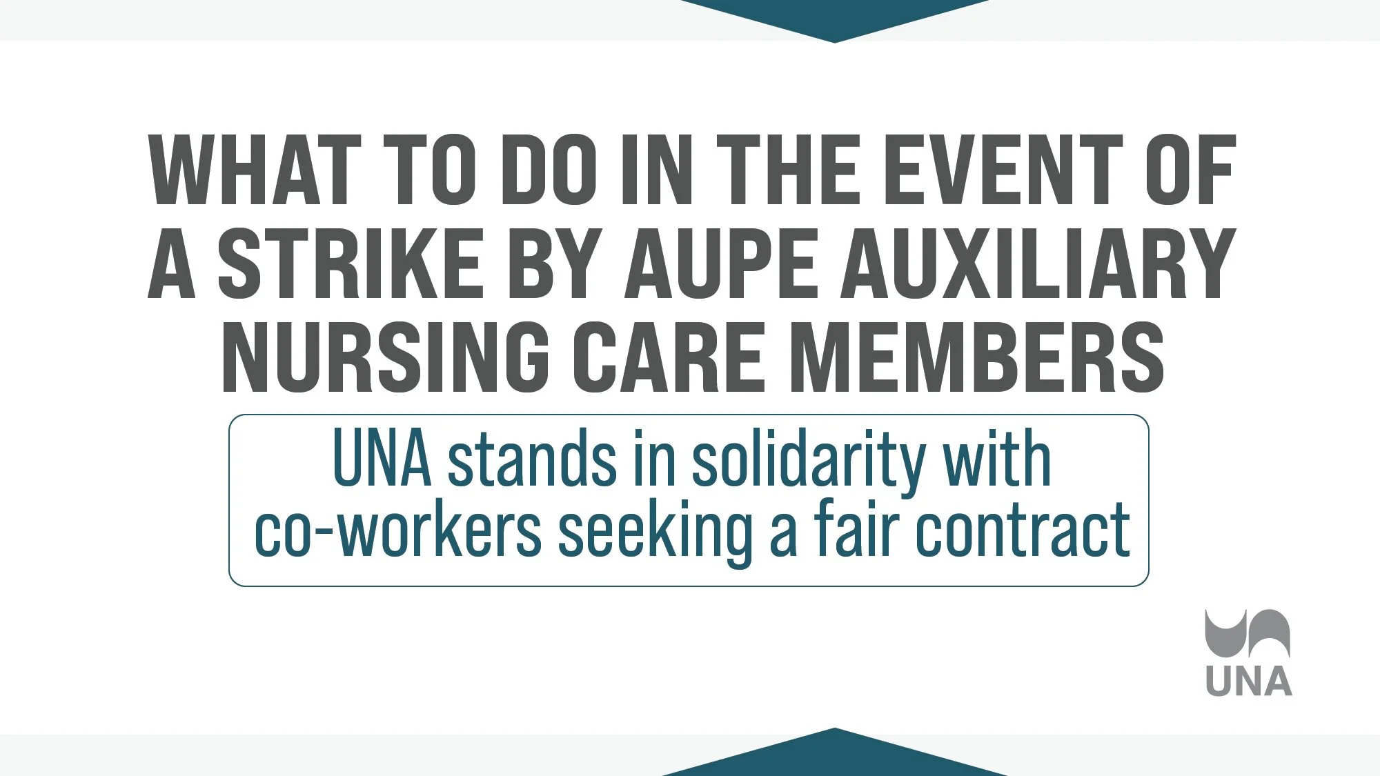 As a result, in the event of a strike by AUPE members, UNA members must report to work for their regular shifts.