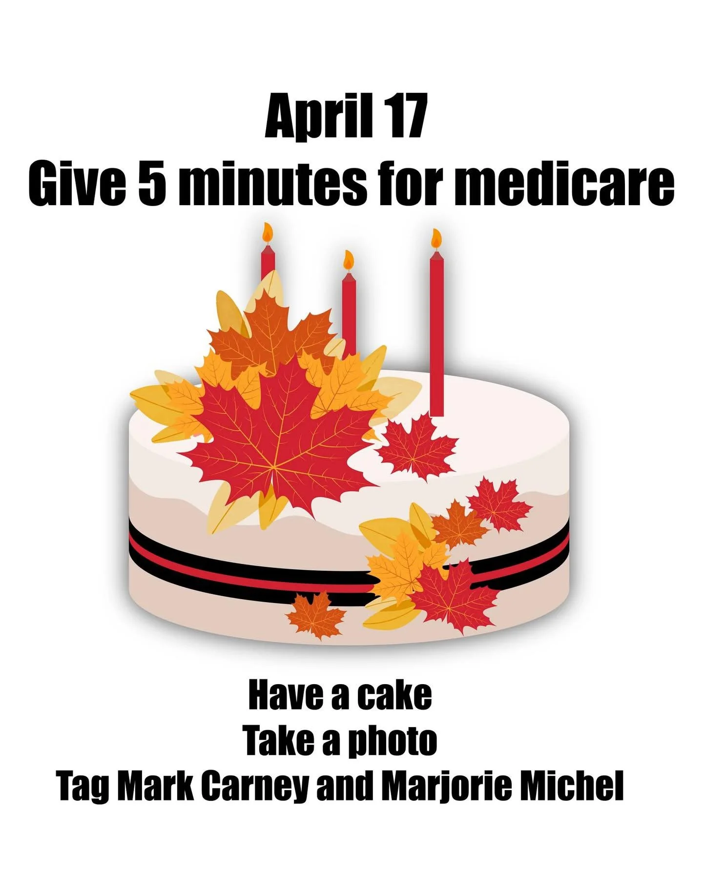 Snap a photo or create an image of a cake and post it on social media with a reminder that Canadian medicare is a true nation-building project and that this great Canadian achievement is in danger because of Bill 11. Even a picture of a cupcake will do. Please tag Prime Minister Mark Carney and federal Health Minister Marjorie Michel in your social media posts.