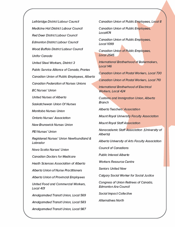 Leaders of 50-plus Alberta and Canadian health advocacy organizations urge Ottawa to enforce Canada Health Act
